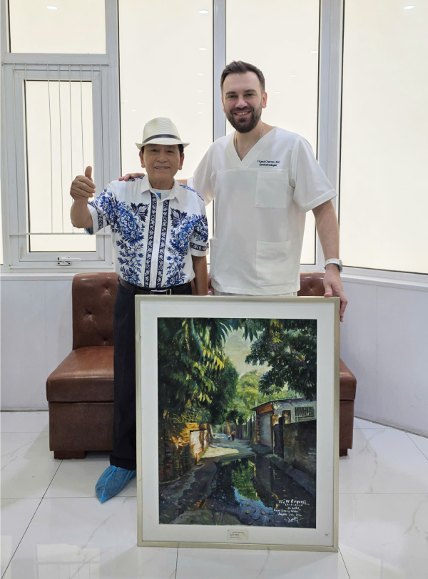 Hoạ sĩ Nguyễn Xuân Tịnh (sinh năm 1948) vẽ tranh sơn dầu tặng BS Chernov Evgenii (Giám đốc Khoa học & Công nghệ nhãn khoa) và đội ngũ nhân viên y tế của Bệnh viện Mắt Quốc tế Việt – Nga thay lời cảm ơn vì đã giúp ông lấy lại được thị lực sáng rõ ở độ tuổi xế chiều.