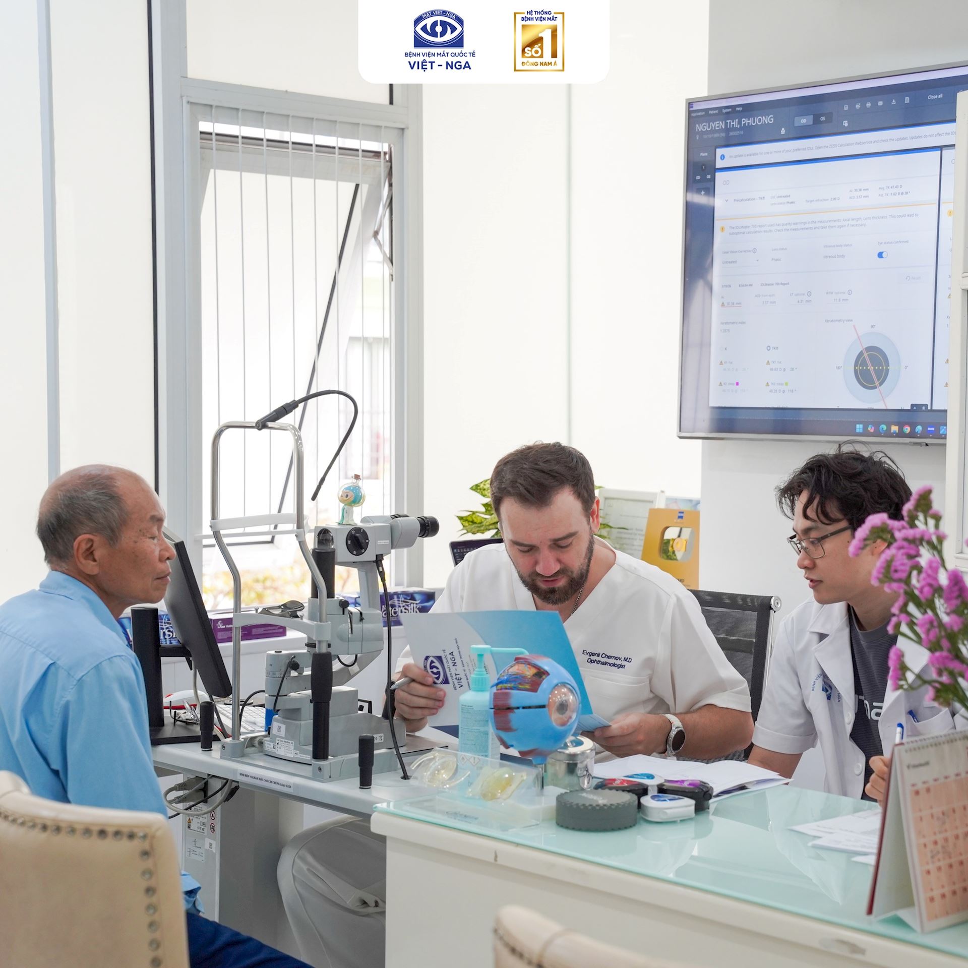 BS Chernov Evgenii - Chuyên gia phẫu thuật đục thủy tinh thể bậc cao thăm khám cho bệnh nhân