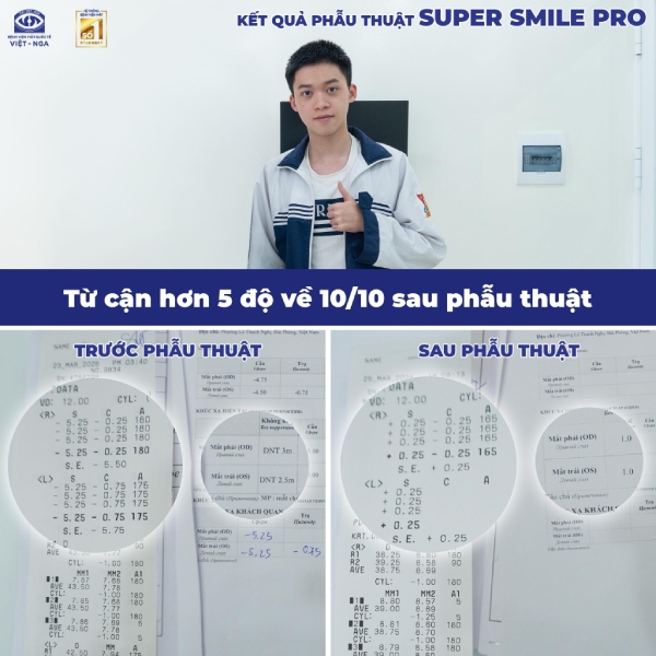 Chia sẻ thêm về quyết định xóa cận, Dũng cho biết: “Trước đây em khá ngại phẫu thuật vì sợ đau và ảnh hưởng lâu dài. Nhưng sau khi tìm hiểu kỹ về các phương pháp xóa cận hiện đại, em đã lựa chọn Bệnh viện Mắt Quốc tế Việt – Nga. Đây là bệnh viện có nhiều ca xóa cận Smile thành công, có thể nói là dẫn đầu hiện nay về xóa cận”.